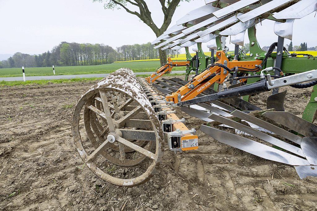 Packerin ana gövdesi, pulluk ana çerçevesiyle paralel uzanan kare profil bir borudan oluşuyor. Bizim testimizde kullanılan beş sıralı pullukta, packer tutucuları ikinci ve beşinci pulluk taşıyıcılarına monte edildi. Packer halkaları bilyalı rulmanlarla donatılmış ve ana boruya bağlı döner kollarla birlikte hareket ediyor. Bu sayede packer, otomatik olarak toprağa uyum sağlıyor. Pulluk çalışma genişliğindeki değişimler aynı mekanizma ile dengeleniyor. Packer ayrıca hidrolik olarak ileri veya geri hareket ettirilebiliyor. Testte kullanılan versiyonda packer basıncı, iki sınırlayıcı vida ile mekanik olarak ayarlanabiliyordu. Bu sayede pulluk ağırlığının %70’i veya maksimum 1.450 kg packer halkalarına aktarılabiliyor. Yaklaşık 3.000 Euro ek maliyetle VSS, hidrolik ayar seçeneği de sunuyor. Ancak orta derecede homojen topraklarda mekanik sistem de yeterli. Packer uzun süre devre dışı bırakıldığında, pulluk ayarları buna göre yeniden yapılmalı. Çünkü 540 kg ağırlığındaki packerin karşıt basıncı ortadan kalkınca, pulluk açısı ve çalışma derinliği etkileniyor.