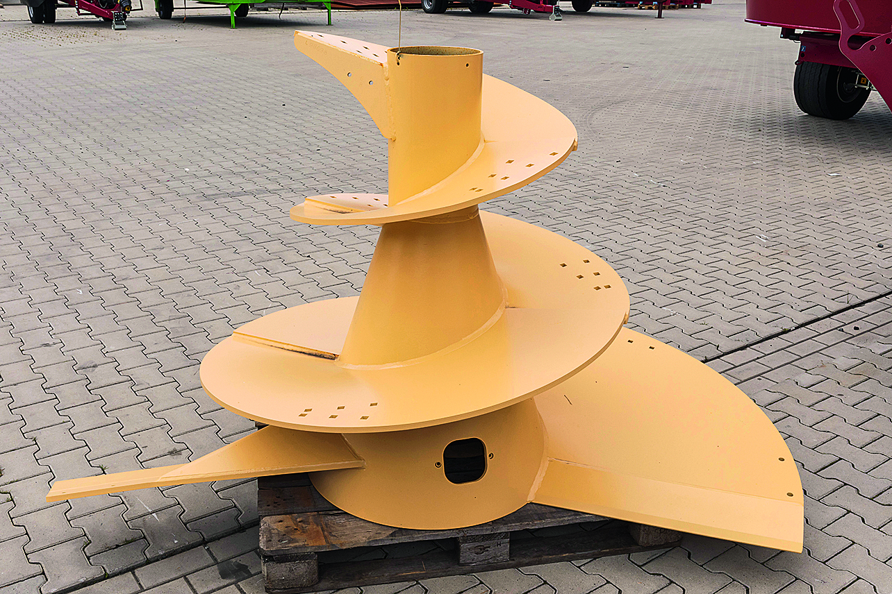 Wille karıştırıcıyı doldururken biz de neler olup bittiğini takip ediyoruz. Konsantre su ile karıştırıldığında, karıştırma burgularının kazanın hemen dibinin üzerinde çalıştığı fark ediliyor. Unlu bileşenleri sürekli olarak zeminden uzaklaşıyor ve yoğun bir şekilde yemle karıştırılıyor. Karıştırma hunisindeki mahsul akışı da ilginç. Bu şekilde yem, önce kabın ortasına yerleştirilen iki üçgenin önünde biriktiriliyor. Bastırılmış yemin bir kısmı, sürekli geçen besleme akışı ile tekrar karışıyor. Geri kalanı sürekli olarak ikinci burgunun alanına itiliyor. Kaba yem doldururken, BvL’nin, “CF karıştırma helezonları yemi daha iyi merkezler” sözünün ne demek istediğini anlıyoruz: Silaj konduktan sonra, burgular konsantre yemi ilk andan itibaren bir paternoster gibi yukarı doğru taşır. En üste gelindiğinde, un, yukarıya gelen silajla karışıyor. Burgunun üzerindeki yemin basıncı, her ek kürekle artıyor, böylece daha fazla un bağlanıyor. Karıştırıcı hızının etkisi de ilginç: sadece 15 rpm’de burguların etrafında bir koni oluşuyor – bu da iyi bir karıştırma etkisinin bir göstergesi. Karşılaştırma için burgunun 25 rpm’de dönmesine de izin verdik.