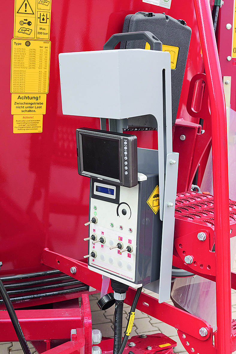 Kompakt besleme karıştırma burgusu, BvL’de olduğu gibi konik silindirik değil, sadece konik. Konik şekil, beslemenin karıştırma işlemi sırasında daha uzun süre ortalanması ve daha iyi bir karıştırma etkisi için sürekli olarak aşağıdan yukarıya yönlendirilmesine etki eder. İlk spiralin geniş şekli ek atak yüzeyi sağlar. Burgunun girişinde, BvL tarafından burgu bölücüsü adı verilen, ayrı ayrı ayarlanabilen bir bölücü demir var. Halihazırda çok kısa olan besleme bileşenlerinin daha da yoğun bir şekilde doğranması için dokuz adede kadar bıçak değişken olarak kullanılabilir; Beş bıçak standart. Yuvarlak kenarlardan dolayı burgunun geometrisinin etkisinin vaktinden önce bozulmaması için BvL, bunları opsiyonel olarak paslanmaz çelik ile kaplıyor. Karıştırma işleminin yoğunluğu elbette karıştırma burgusunun doğru hızına bağlı. Ancak birçok varsayımın aksine, hız mümkün olduğu kadar yüksek olmamalı, bunun yerine kaymayı azaltmak için oldukça düşük olmalı – 1.450 motor devrinin genellikle yeterli olması avantajına sahip. Traktör yeterince güçlü değilse, özellikle dolu bir karıştırma kabıyla başlamak için, BvL’den bir redüksiyon dişlisi sipariş edilebilir. BvL V Connect, traktör kabinindeki burgu hızını görüntülemek için basit bir teknolojiye ek olarak, Karıştırıcı Kontrolü sunar. Hızı, kontrol ünitesi karıştırma süresini ve her bir karışım için toplam devir sayısını gösterir. Verileri kaydetmek istiyorsanız, BvL Dairy-Feeder yönetim sistemine ihtiyacınız var. Verilerin depolanması, homojenlik farklılıklarının izlenmesini sağlar. Karıştırma sürecini daha iyi analiz etmek veya çalışanlarına yem hazırlama konusunda net kurallar vermek isteyenlerin bu nedenle Süt Ürünleri Besleyiciyi kullanmaları tavsiye edilir. İpucu: Dijital ekran artık V-Mix karıştırıcı yemliklerinin sonradan takılabilecek şekilde de mevcut.
