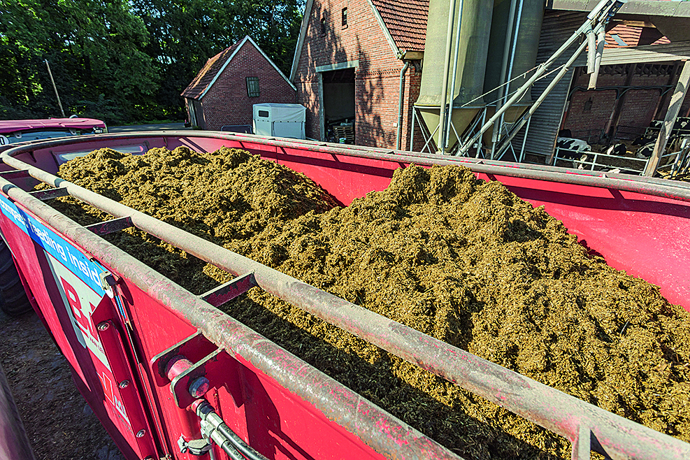 Wille için, kompakt bir TRK ile beslemek, silajla başlar. Çiftçi, “Bugün ot ve mısırı 8 mm’ye kadar, olabildiğince kısa kesiyoruz” diye açıklıyor. Yapılandırılmış ham lif sağlamak için kullanılan saman artık kullanılmıyor. Wille, 8,9 kg konsantre yem ve yedi litre su ekleyerek süt inekleri için; tüm veriler bir hayvan başına olacak şekilde, yem karışımını hazırlamaya başlıyor. Akabinde, en az iki saat içinde bulamaç kabarır, şişer. Şiştikten sonra, su ve propiyonik asit eklenmiş karışımı iki burgu kalın bir macun haline getirir. Asit, yemin yaz aylarında ısınmasını önler. Bunu, 11 kg silolanmış preslenmiş hamur ve 18 kg ot silajı gibi lif bileşenleri gibi başka nemli bileşenlerin eklenmesi izler – Daha sonra Wille, son bileşen olarak 21 kg mısır eklemeden önce 13 dakika boyunca hepsini karıştırır. Son bileşeni ekledikten sonra, Wille karıştırıcının 15 rpm’de 13 dakika daha çalışmasına izin verir, ancak o zaman kuru madde içeriği % 36 olan kompakt TRK’nın boşaltılması başlar. İnekler önümüzdeki 24 saat içinde toplam 26 kg kuru madde yiyecekler.