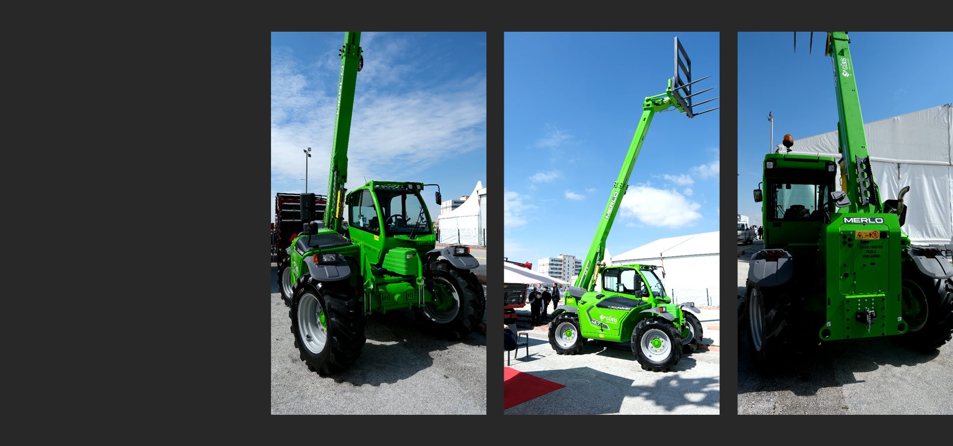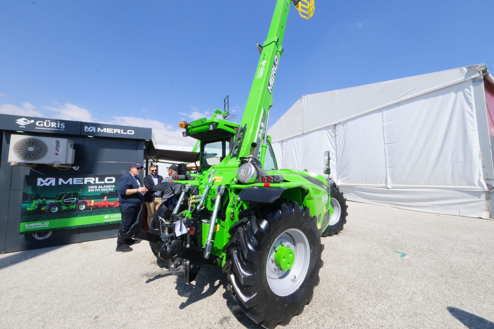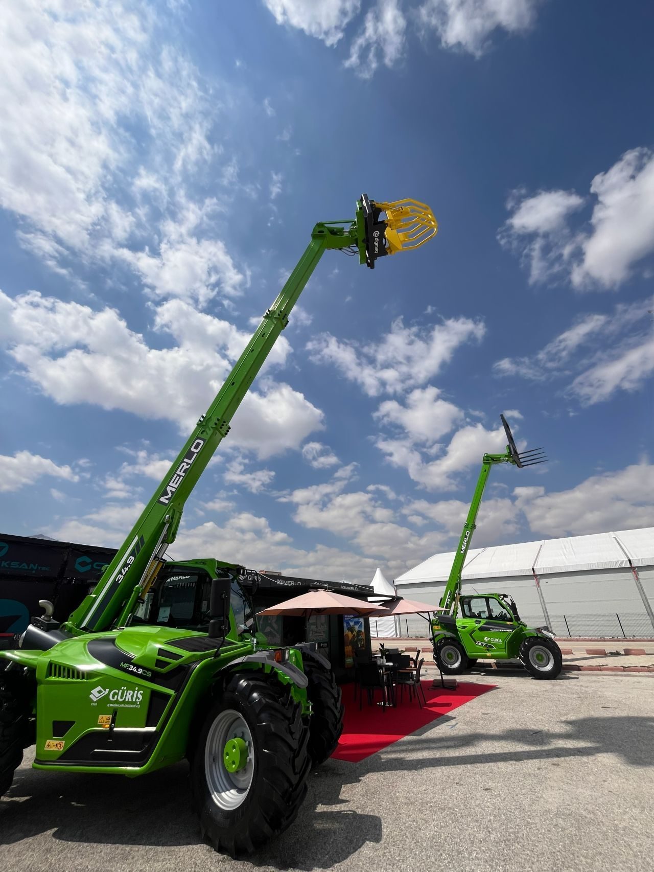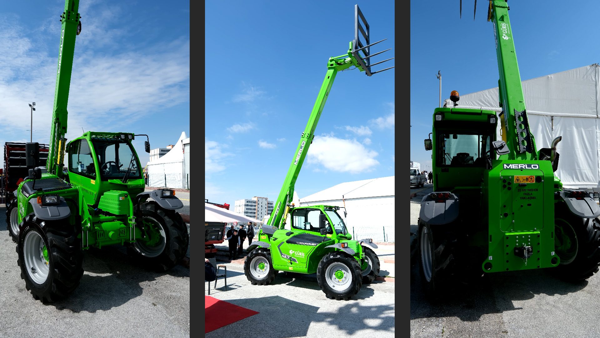 GÜRİŞ İş Makinaları Endüstri, Konya Tarım Fuarı’nda sergilediği Merlo teleskopik yükleyici modelleriyle tarım sektöründe çok yönlü kullanım imkanı sunan çözümlerini tanıttı. Fuarda öne çıkan Merlo 34.9CS ve TURBOFARMER 42.7 modelleri; yükleme, ekipman kullanımı ve çekiş kabiliyetini bir arada sunarak sahadaki operasyonel verimliliğe katkı sağladı.